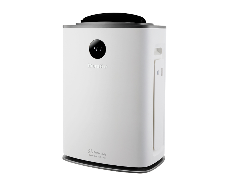 Dustie DDH500 PRO DehumidifierWIFI远程控制 四季稳定除湿智能转轮除湿机采用蒸发冷凝式主动除湿技术,不受环境限制(适用于梅雨季、冬季结霜、干衣等场景),配置湿度及动态感测,实时实现湿度显示,40%/50%/60%三档环境湿度控制,精准控湿,新增手机APP无线远程操控,即便人不在家中,也可以随时开始除湿,给家人创造舒爽健康的生活环境。 点击放大扫描 直达购买商品 性能参数 除湿方式:高温冷凝式 除湿性能:6.8L/D(20°, RH70%) 最大适用面积:60m² 水箱容积:5.8L 风量:200m³/h 风速:6.5m/s 产品尺寸 其他规格 操控:触摸/WIFI远程 感测器:双感测 极速干衣模式:有 湿度显示:有 负离子: 有 排水方式:水箱/水管 工作温度:0°C~35°C 定时:2/4/8h 额定电压:220V/50Hz 消耗功率:580W 重量:9.5kg 颜色:钛坦灰 产品说明书点击下载产品说明书